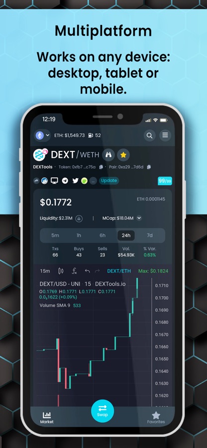 The DEXTools app allows you to follow thousands of cryptocurrencies in real time. Follow your favorite cryptocurrencies before they are anywhere else, follow any cryptocurrency listed on any DEX in the world. Charts, prices, indicators and everything you need for your trading and investments.