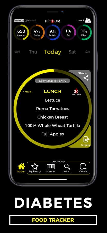The Diabetes Food Tracker App By Fittur makes food tracking and carb counting simple. With Fittur you can lose fat as easily as your non-diabetic friends. And eat the same foods while maintaining ideal blood sugar levels.