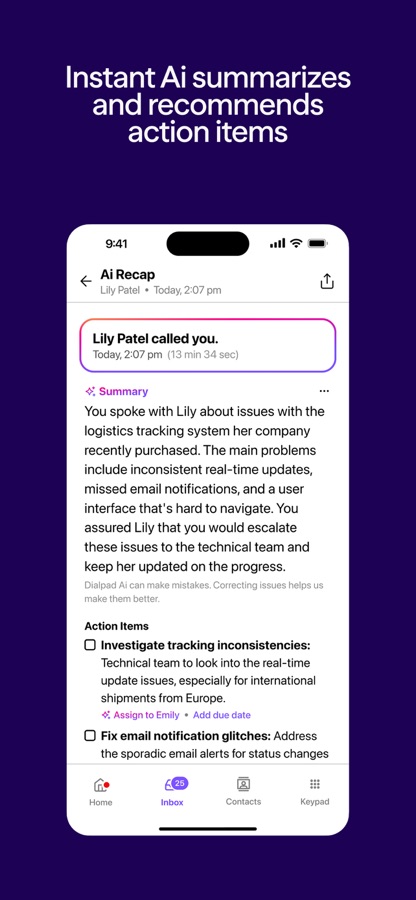 With Voice Intelligence™, calls are automatically transcribed and surfaced to you once you hang up, so you’re never second-guessing what was said.