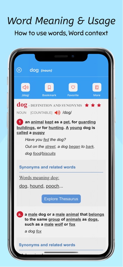 * Short and clear definitions, with menus in longer entries to help find the meaning quickly