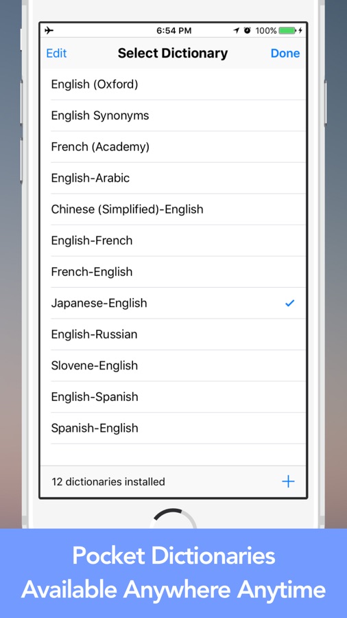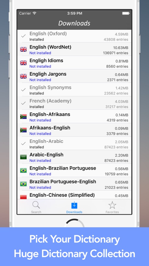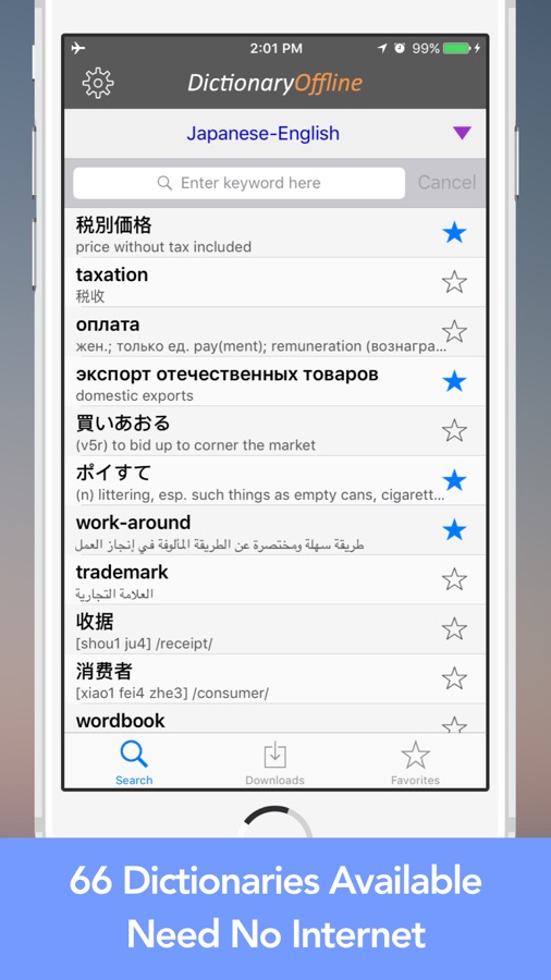 Действительно форума словари приложение позволяет просматривать до 66 словарей для определения слова многоязычным и перевод без подключения к интернету. После того, как словари загружены, он будет оставаться в памяти устройства.