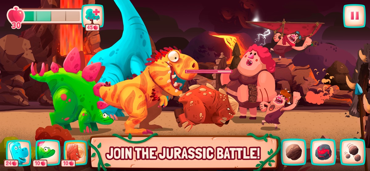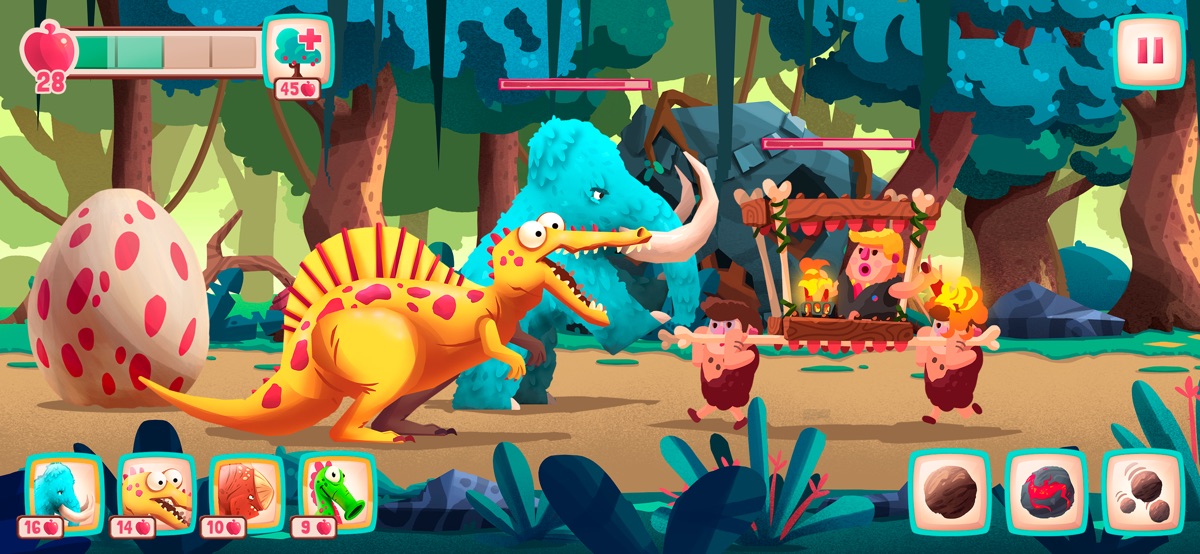 Увеличивай мощь своих динозавров, улучшай арсенал, укрепляй оборону, смейся в лицо врагу или впадай в панику в зависимости от ярости и упрямства пещерных людей.
