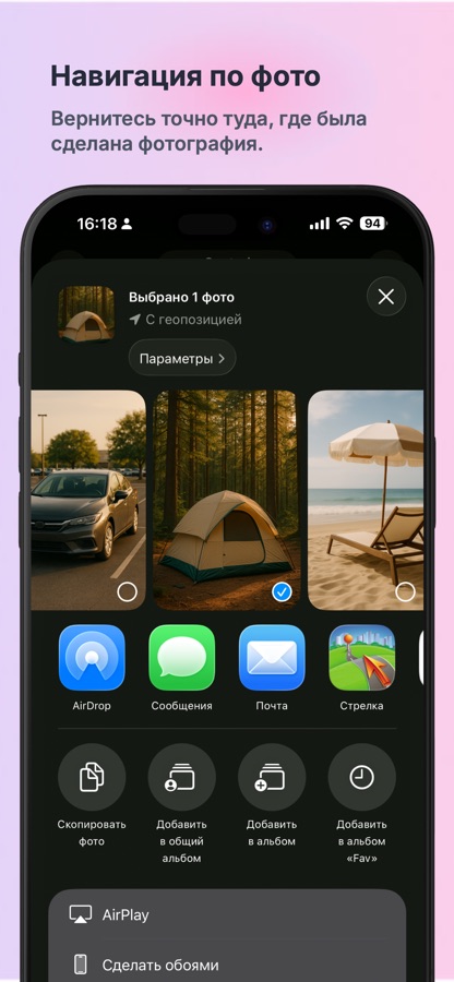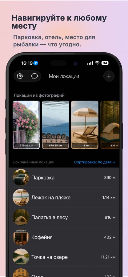 Переходите к местам напрямую из фотографий. Приложение считывает GPS-метаданные изображений, позволяя вернуться к нужному месту без ввода координат.