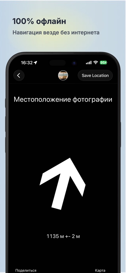 Сохраняйте места, следуйте за стрелкой и переходите к точкам или фото-локациям с понятным и простым интерфейсом — интернет не требуется.