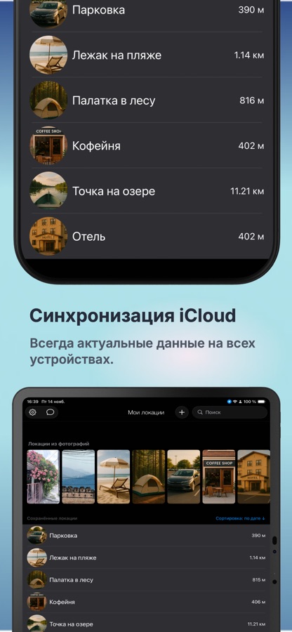 Ваши сохранённые места автоматически синхронизируются через iCloud.
