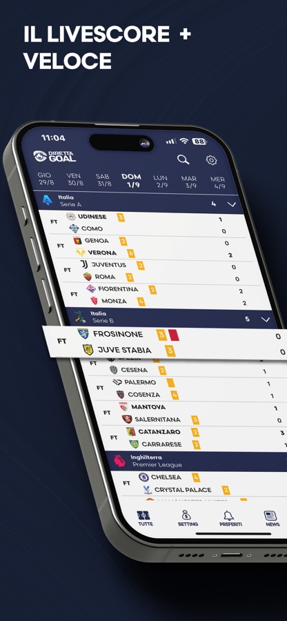 Scarica DirettaGoal.it! Il primo Livescore pensato appositamente per gli scommettitori! Con i pronostici dei migliori tipster d’Italia, potrai analizzare ogni match con quote, testa a testa, ultime formazioni e statistiche dettagliate, così da prendere decisioni più informate ed aumentare le probabilità di Vincita.