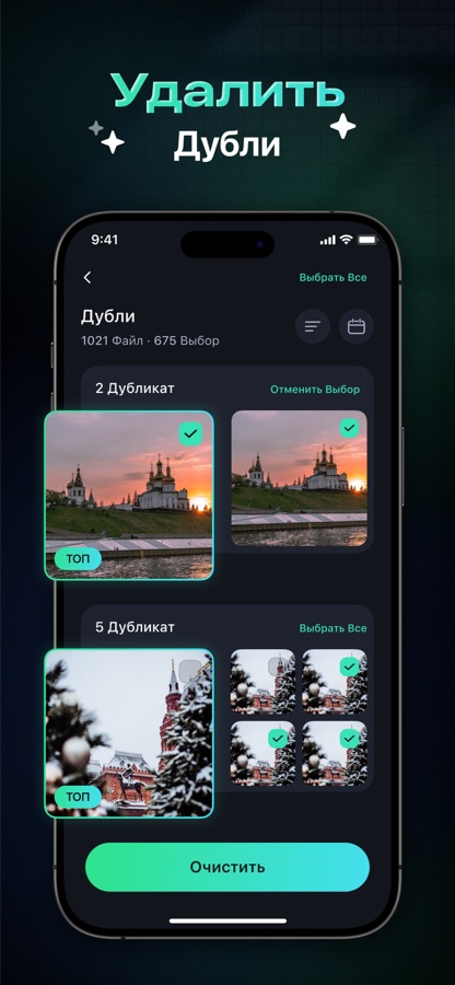 — Поиск похожих и дубликатов фотографий: Интеллектуально определяет почти идентичные снимки. Сохраняйте лучшие, удаляйте остальные!
