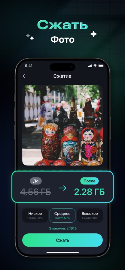— Сжатие без потерь: уменьшайте размер фотографий/видео без потери качества. Экономьте гигабайты без усилий.