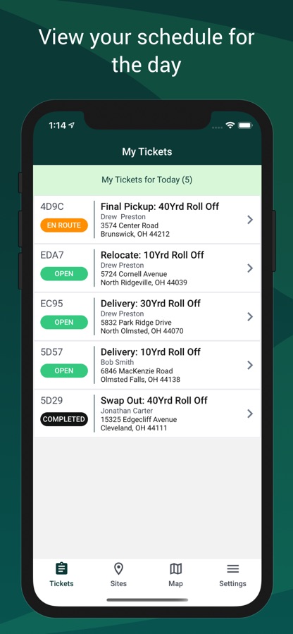 •Detailed work orders including customer names, addresses and dumpster delivery instructions