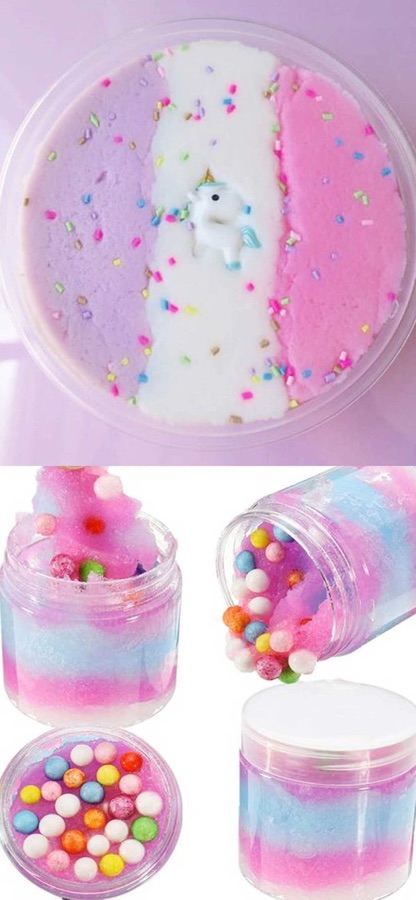 — Сделай сам и создай свою собственную слизь — добавь свои любимые цвета, добавь такие ингредиенты, как радуга, единорог, облако, аквариум.