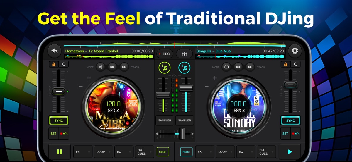 Почувствуйте себя традиционным диджеем с помощью виртуальных проигрывателей, которые позволяют легко скретчить, микшировать и микшировать треки. Раскройте своего внутреннего диджея и создавайте плавные переходы между песнями.