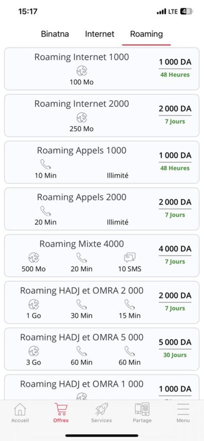 Le menu des offres quant à lui, vous affiche les détails des différentes offres du moment et qui sont disponibles pour votre profil. Vous pouvez les activer en un clic.