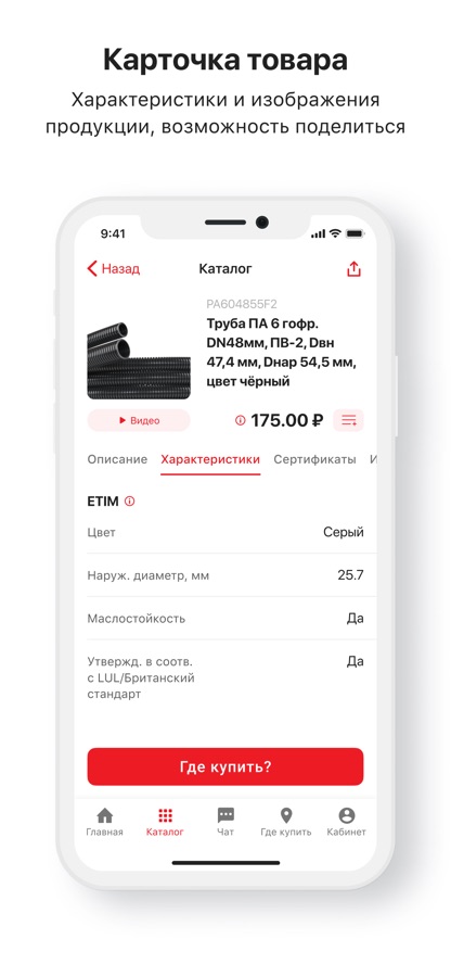 Каталог продукции. Фильтруйте, сортируйте, просматривайте детальную информацию о продукции: характеристики, сертификаты, чертежи, каталоги, цены. Выполняйте поиск продукции по штрихкоду, коду или названию. Делитесь ссылкой на товар с другими людьми.