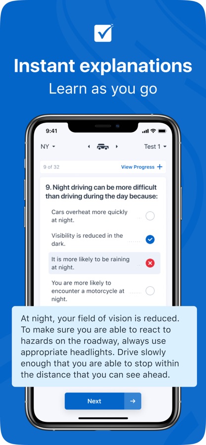 • State-Specific Tests: Because each state has different driving laws and restrictions, we’ve tailored our tests to each specific state. This isn’t one of those generic DMV practice tests.