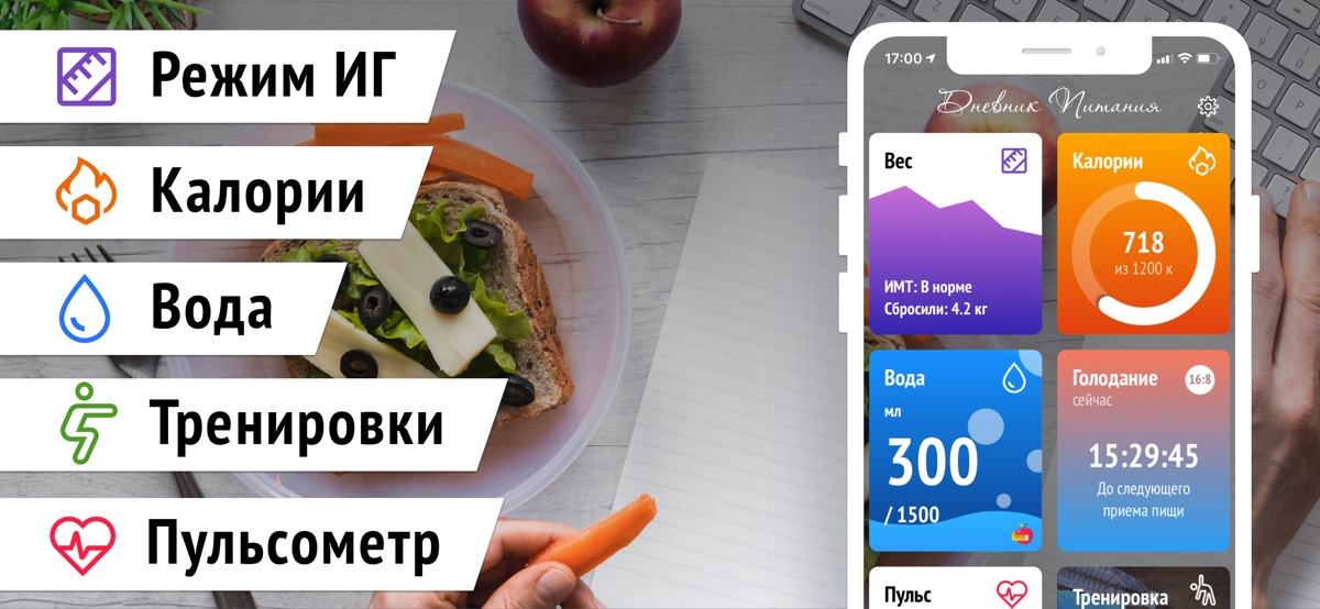 Дневник питания, интервальное голодание, водный баланс, счетчик калорий и другие замечательные функции, которые помогут вам похудеть, а также поддерживать отличный результат. Достигайте своих целей вместе с Дневником Питания!