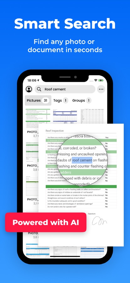 Находите фотографии и документы за считанные секунды. DocuMate Scanner использует ИИ (искусственный интеллект), чтобы понимать, что изображено на фотографиях, и может найти любой текст. Больше не нужно бесконечно прокручивать галерею изображений, чтобы найти фотографии, или просматривать облачные диски! Вы можете легко найти свои сканы, снимки экрана, документы, фотографии, набрав всего несколько букв.