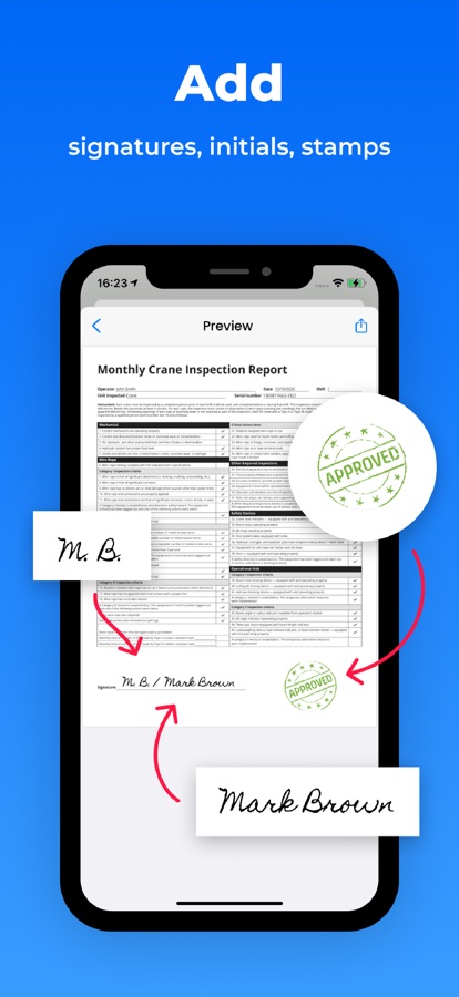 Используйте встроенную функцию подписи, чтобы ставить подпись, инициалы или штампы на документы и делиться ими или распечатывать их за считанные секунды.