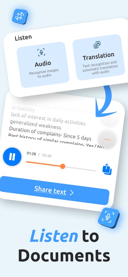 Конвертируйте текст в MP3 и слушайте документы в любое время — даже при заблокированном экране.