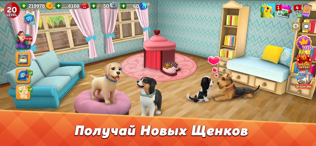 • Позаботься о своих собаках как в реальной жизни: расчесывай, мой, дрессируй, гладь и корми!
