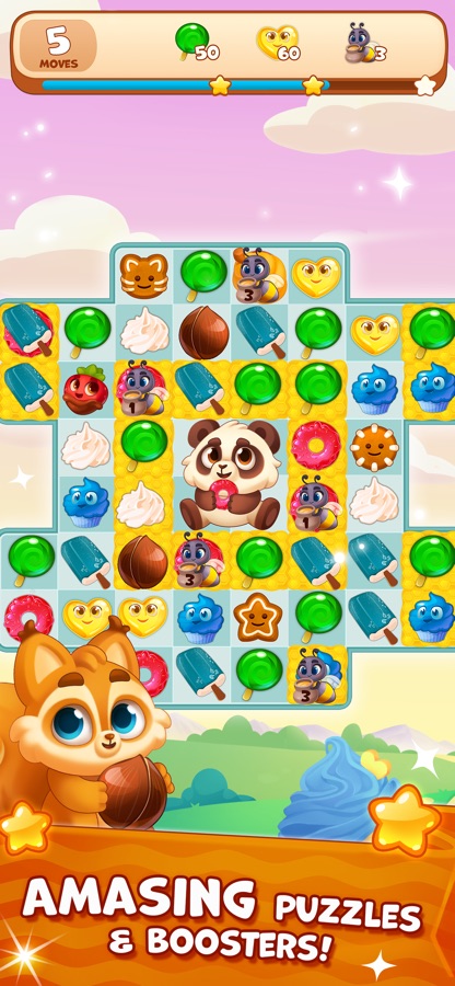 Веселые приключения для взрослых и детей всех возрастов. Вас ждут интересные и захватывающие уровни в жанре три в ряд. Скучать вам точно не придется!