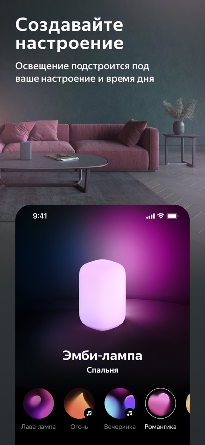 - Управление голосом через Алису («Алиса, включи режим «Вечер»).