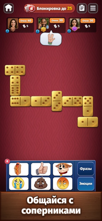 • общайся с противниками в чате, посылай смайлы и стикеры, пока играешь в Домино