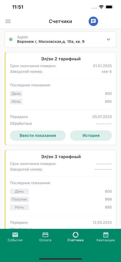 — посмотреть и передать показания приборов учета;