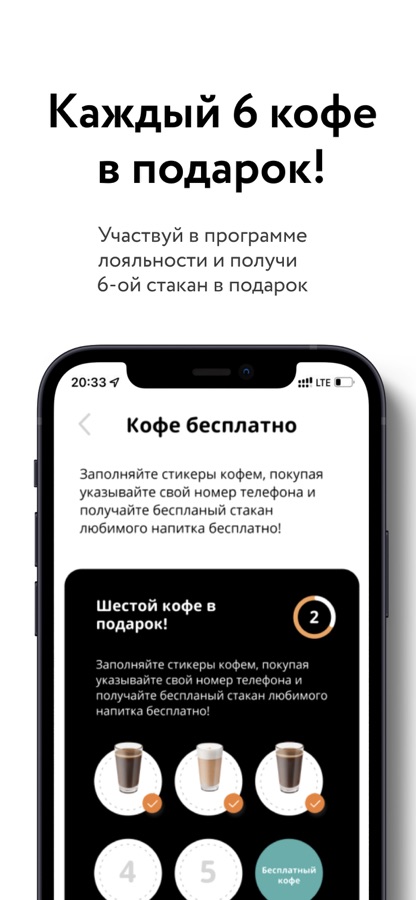 — Возможность вступить в программу лояльности «6-ой стакан в подарок»