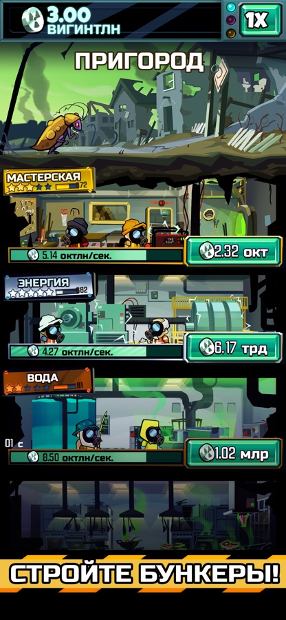 Вы потратили много лет на создание технологии, которая обеспечивает защиту даже при полном разрушении земной поверхности, и тем, кто выжил в катаклизме, поневоле придется обратиться к вам, их спасителю, благодетелю и руководителю! Нажимайте кнопки, чтобы построить подземное убежище, а затем расширяйте его, покупая роскошные комнаты и полезные улучшения. Чем просторнее бункер, тем больше людей он вместит и тем больше денег вы заработаете. Продолжайте нажимать кнопки, чтобы увеличить свои доходы до заоблачных величин!