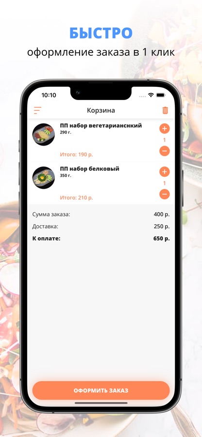 Скачивайте наше приложение, оформляйте заказ и наслаждайтесь вкусной едой!