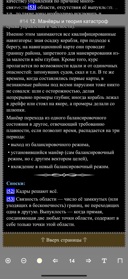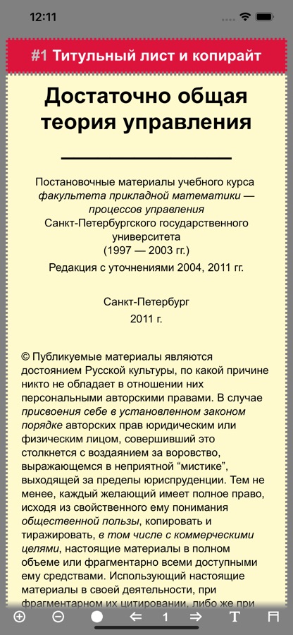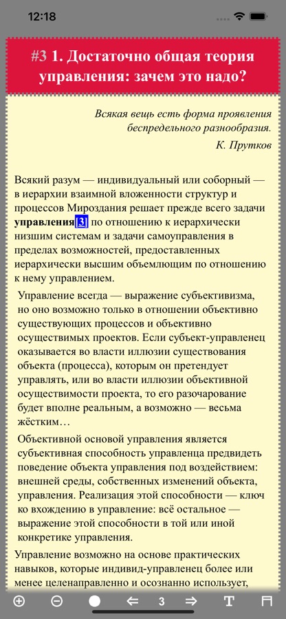 В приложении удобное управление и меню. Есть возможность выбрать цвет фона, изменить размер шрифта, вид шрифта, а также перелистывать рубрики. Можно включить вывод полосы с названием рубрики вверху. Кроме того, запоминается последнее место чтения при закрытии приложения. Можно открыть приложение и продолжить чтение.