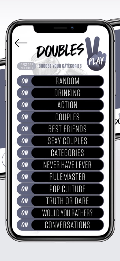 Whether you want to play truth or dare, never have I ever or compete to answer hilarious questions to avoid drinking, with Doubles you always have a party in your pocket!