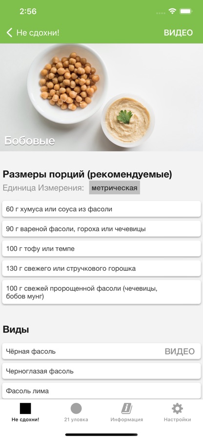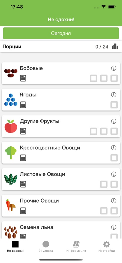 Приложение доктора Грегера «Не Сдохни!» предоставляет подробную информацию о самых здоровых продуктах питания и о размерах порций каждого из них в ежедневном рационе. Подробное обоснование можно найти в его книге «Не сдохни! Еда в борьбе за жизнь».