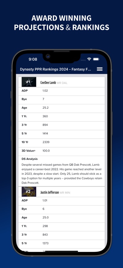 From PPR to half-PPR, to TE premium, to auction values, best ball rankings, dynasty rankings, rookie only, and even keeper rankings. Our rankings will be locked and loaded on your app.