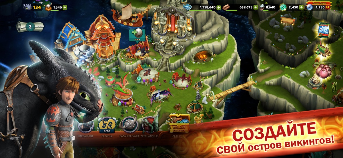 Создайте СВОЙ остров викингов! Спасайте ваших любимых драконов DreamWorks, ждите, пока они вылупятся из яйца и приручайте их! Путешествуйте по неизведанным землям в огромном мире викингов!