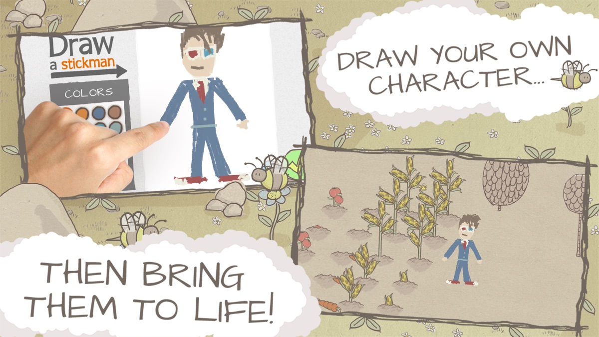 Цветущий мир фантазии, приключений и оригинальности… Создай и нарисуй своего уникального персонажа Стикмана! Придумай собственный путь через творческую приключенческую игру, нарисовав своего собственного Стикмана и оружие для него!