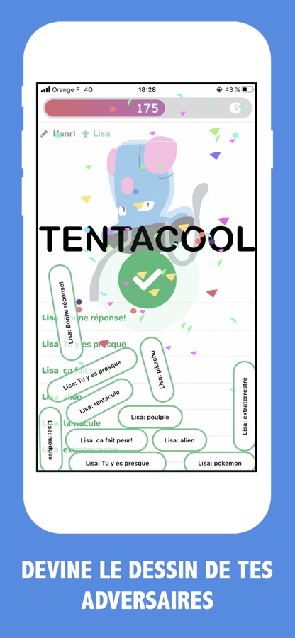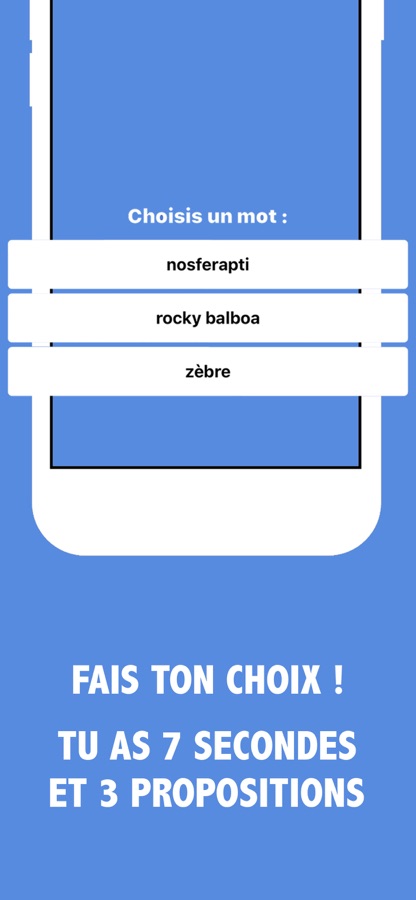 Chaque joueur dessine à tour de rôle. Après avoir choisi entre 3 propositions tu dois la faire deviner le plus vite possible pour gagner un maximum de points.