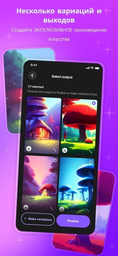 Если вы ищете яркую красочную картину или что-то более мрачное и антиутопическое, WOMBO Dream предоставит вам множество избранных стилей.