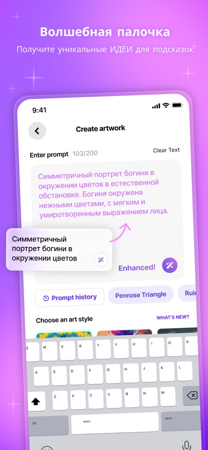 Превратите слова в фотографии и красивые цифровые произведения искусства, используя мощь искусственного интеллекта! Все, что вам нужно сделать, это ввести подсказку, выбрать художественный стиль и посмотреть, как WOMBO Dream — AI Art Generator воплотит вашу идею в жизнь за считанные секунды. Вы хотите создать фотографию, картинку, рисунок или картину, которая станет вашим произведением искусства? WOMBO Dream — AI Art Generator — это художественная станция для вас. Вы можете превратить текст в любое изображение или фотографию.