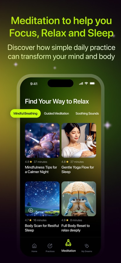 Start your calming nightly routine with SleepApp — the only app that blends meditation, sleep sounds, breathing, and AI dream support into one relaxing bedtime experience.
