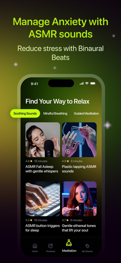 Whether you’re looking to relax with breathing practices, fall asleep to calming sounds, explore your dreams, or talk to an AI therapist — SleepApp helps you build peaceful nightly rituals and wake up with clarity.