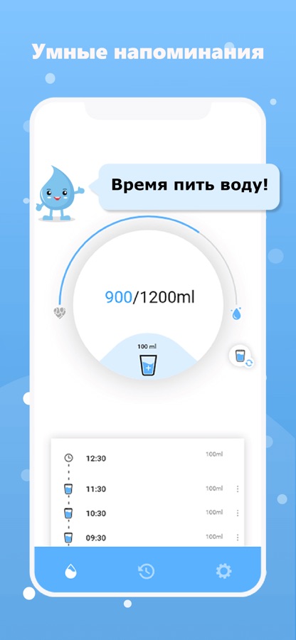 Вы можете запланировать получение напоминания о питьевой воде или выбрать время, когда доступно приложение по умолчанию.