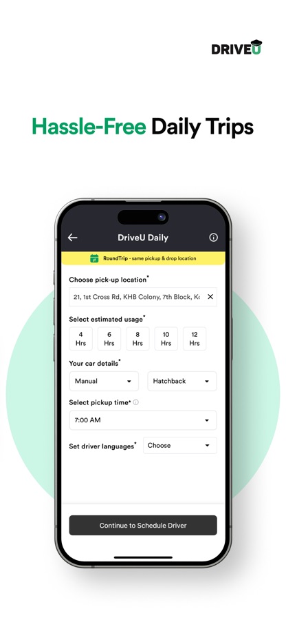 Описание DriveU: Hire Driver for Car