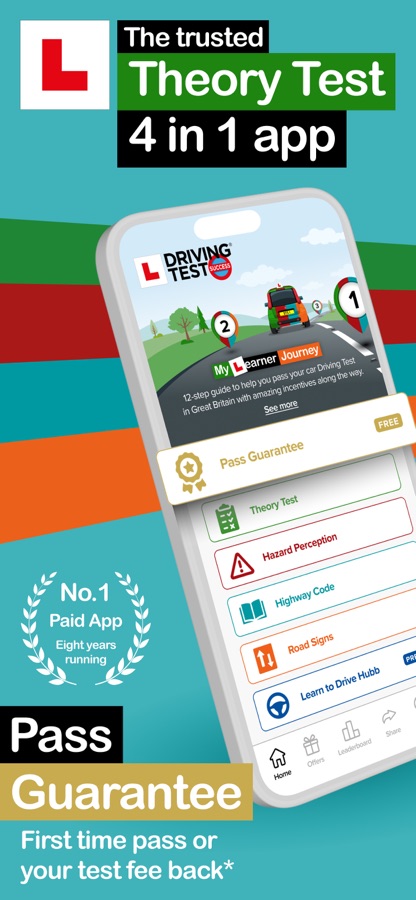 97% of learners pass their Theory Test using nothing more than this 4 in 1 AWARD-WINNING app*! Revise with full confidence knowing you have EVERYTHING you need to pass your 2026 Theory Test first time, getting you 1 step closer to your full DVLA licence, or we’ll give you your test fee back.