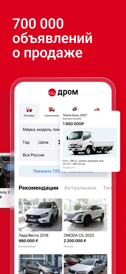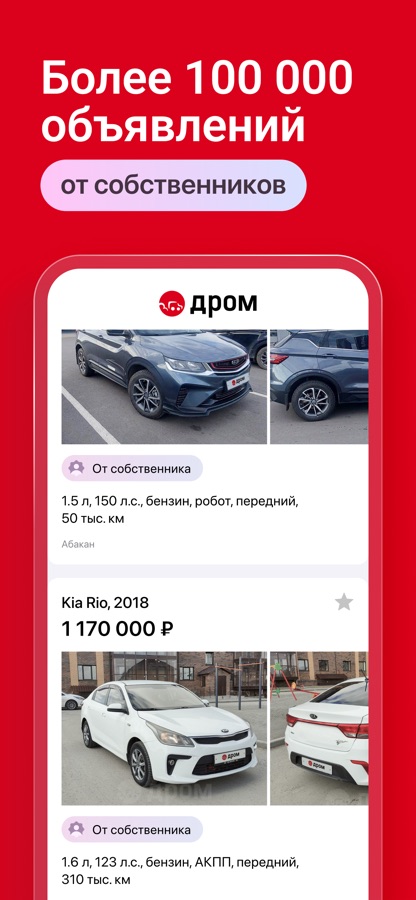 База объявлений Дрома от частных лиц и автосалонов насчитывает более 600 000 предложений со всей России. Машины на любой вкус и цвет, прямо с мобильного.