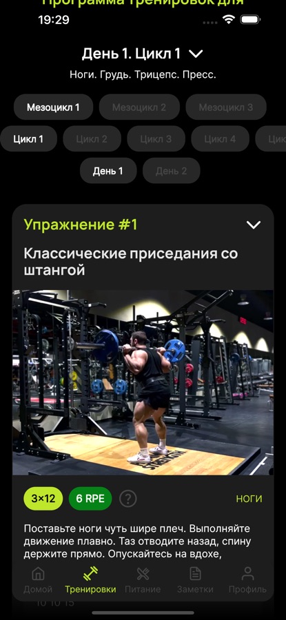— имеет порядок упражнений и необходимый диапазон повторений, чтобы давать нагрузку для прогресса, но не перетренировать.