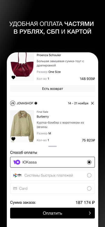 Оплачивайте заказ как вам удобнее: картой в рублях, используйте СБП или платите частями через Плайт.