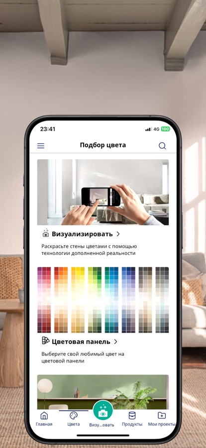 • ПОСМОТРИТЕ, как цвета мгновенно появляются на ваших стенах с помощью технологии дополненной реальности;