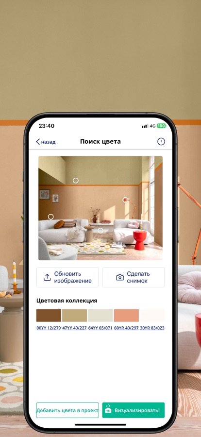• ПОДЕЛИТЕСЬ собственным дизайном и идеями оформления комнат с друзьями и близкими, чтобы сразу же получить советы по выбору цвета;