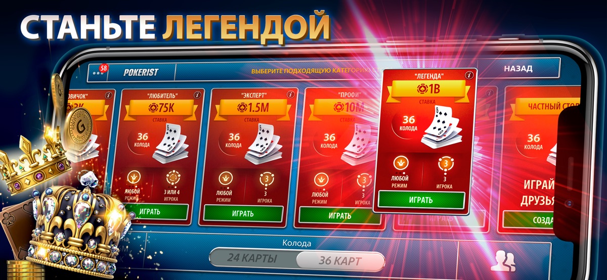 РЕЖИМЫ 24 И 36 КАРТ: Выбирайте из двух режимов колод для игры: классические 36 карт или уменьшенный вариант с 24 картами для любителей быстрых партий. В Дурак Онлайн от Pokerist каждый найдет себе игру по вкусу!